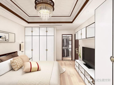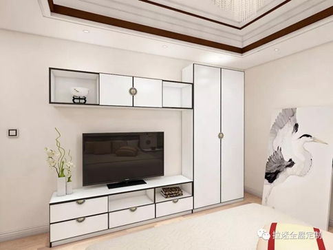 臥室中,床頭柜、衣柜、電視柜都是方方正正的設(shè)計,讓臥室不僅明亮寬敞同時更顯整齊,有條不紊。