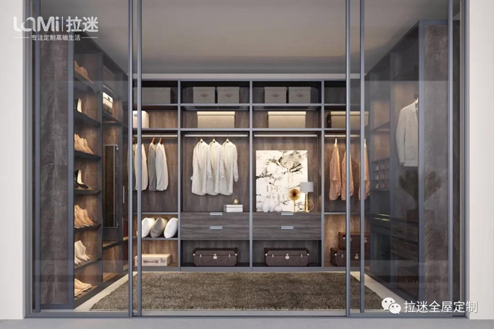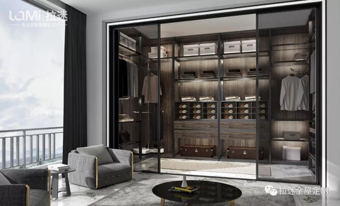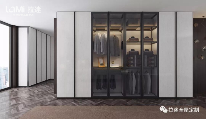 第二代“米蘭諾”與窄邊框小中空門進行了融合。衣帽間不用躲藏在角落中,而是成為家居中的一抹亮色。