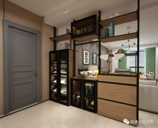 功能性隔斷簡單來說就是讓隔斷與收納組cp,實(shí)現(xiàn)一物多用,不浪費(fèi)任何空間。