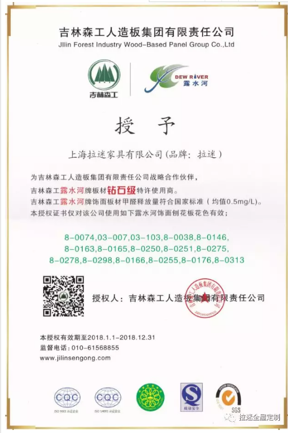 拉迷與吉林森工合作,成為吉林森工的鉆石級(jí)戰(zhàn)略合作伙伴,板材板材的甲醛釋放量遠(yuǎn)遠(yuǎn)低于國家E1級(jí)環(huán)保標(biāo)準(zhǔn),達(dá)到了≤0.5mg/L的E0級(jí)環(huán)保水平。