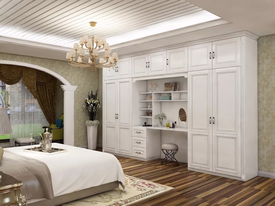 一般的臥室打開方式是:一張床、一個梳妝臺,一件衣柜。它們各自擺放在臥室的不同角落,相互之間毫無交集。但在拉迷定制衣柜這里,他們,可以融合在一起!