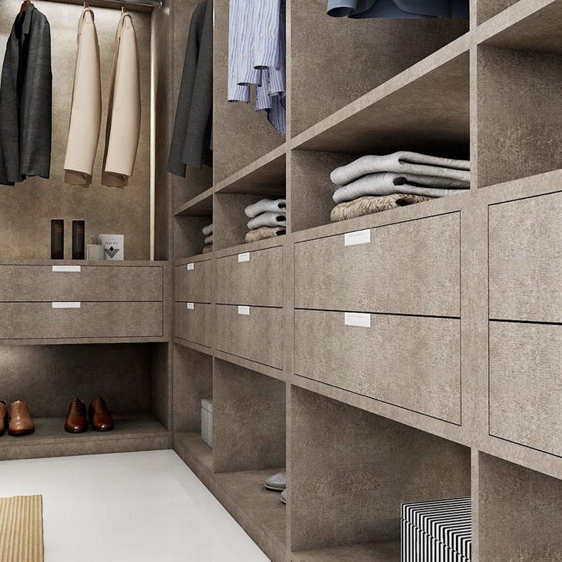 德國夏特飾面紙,木紋自然逼真,品質上佳。奧卡姆臥室門板系列一面亮光一面啞光的工藝,使得打開柜子顏色特別統一,