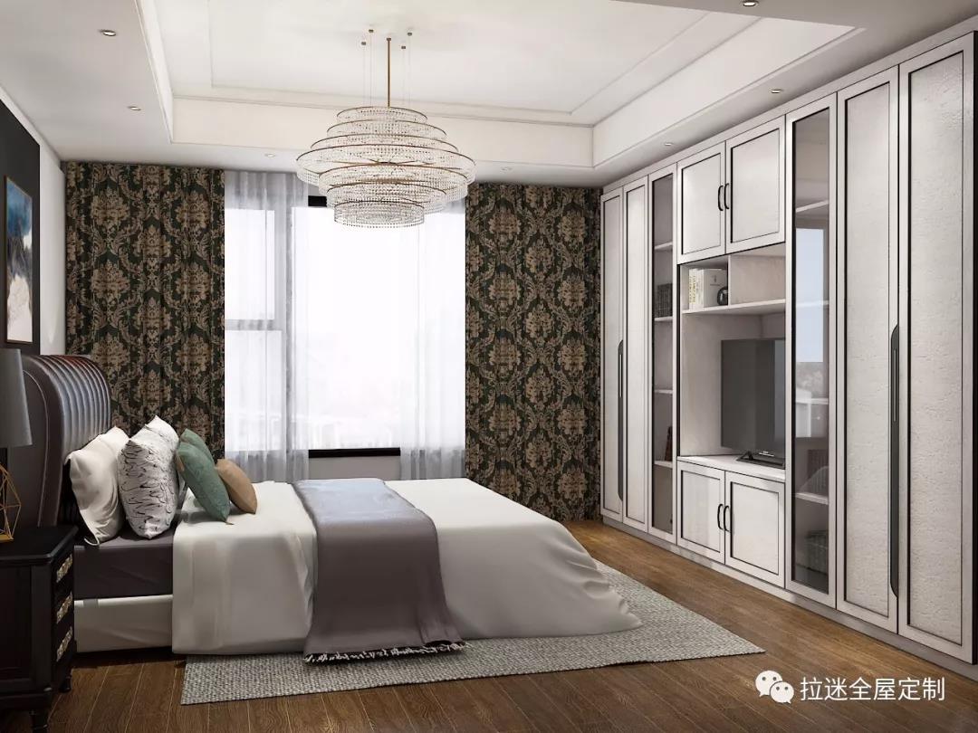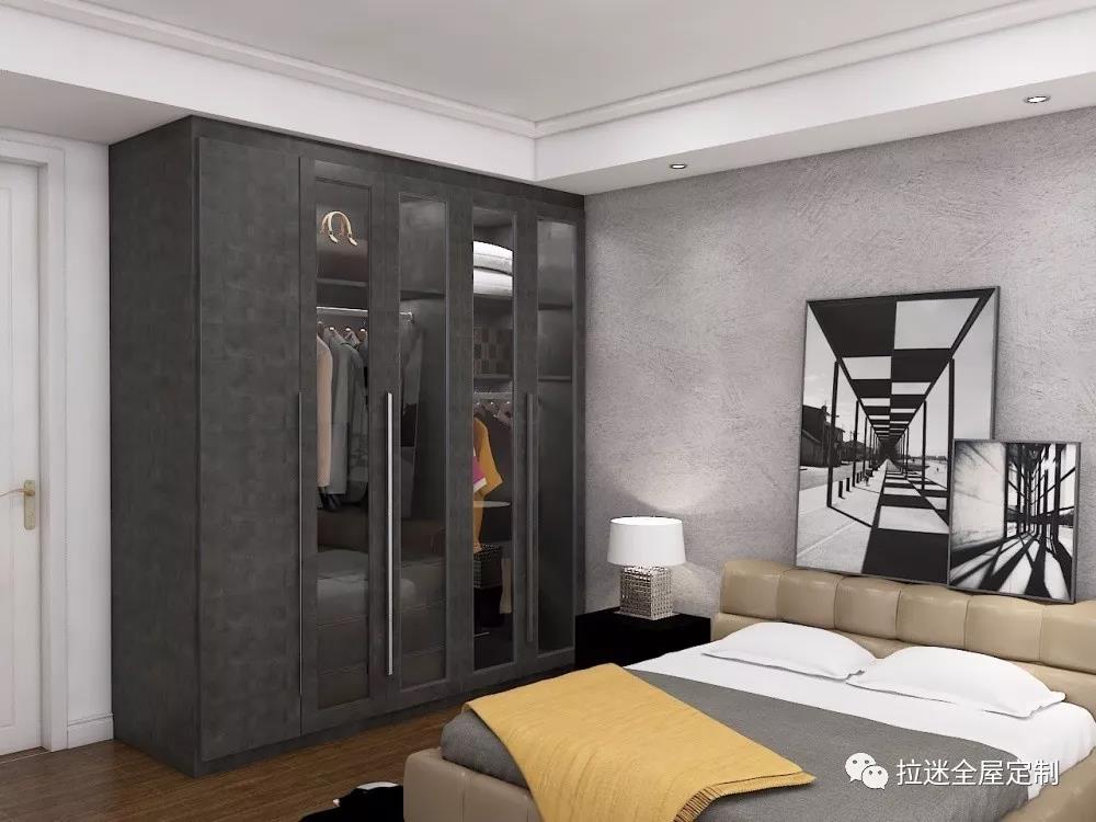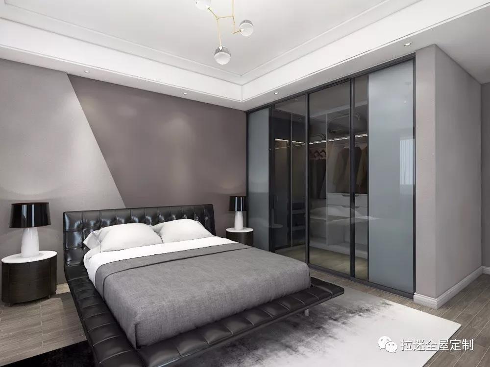 在床頭或床尾位置裝個定制衣柜,這樣可以達到非常巧妙的空間利用效果。