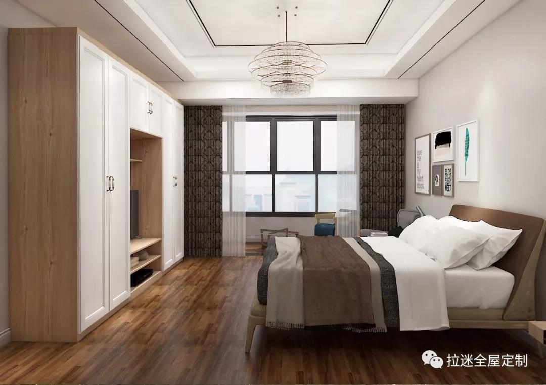 臥室寬度較大的,則可以在床的側邊擺放衣柜,如果寬度有限的話,則可以取消掉一個床頭柜,
