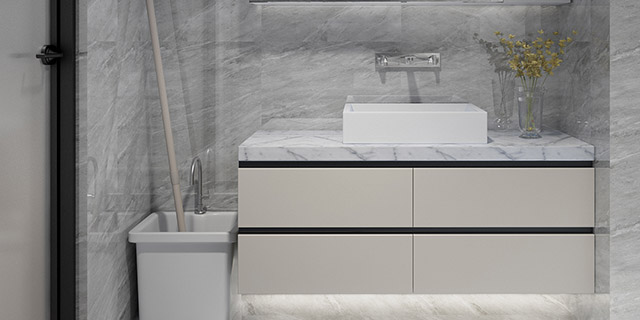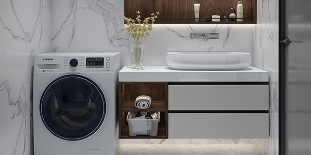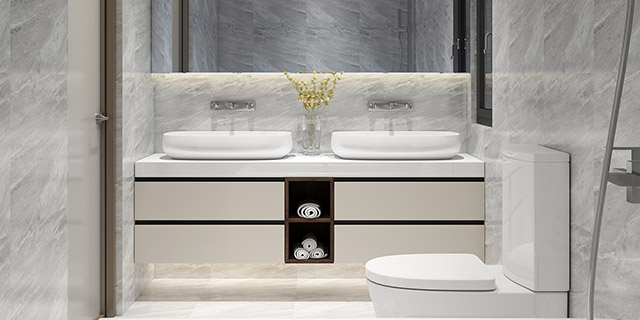 墻面的大理石紋理瓷磚更顯得大氣整潔。